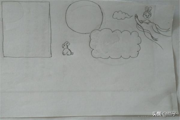 4右边画出在天上飘飞的嫦娥,嫦娥飞的时候身边的细节一定要画到位。